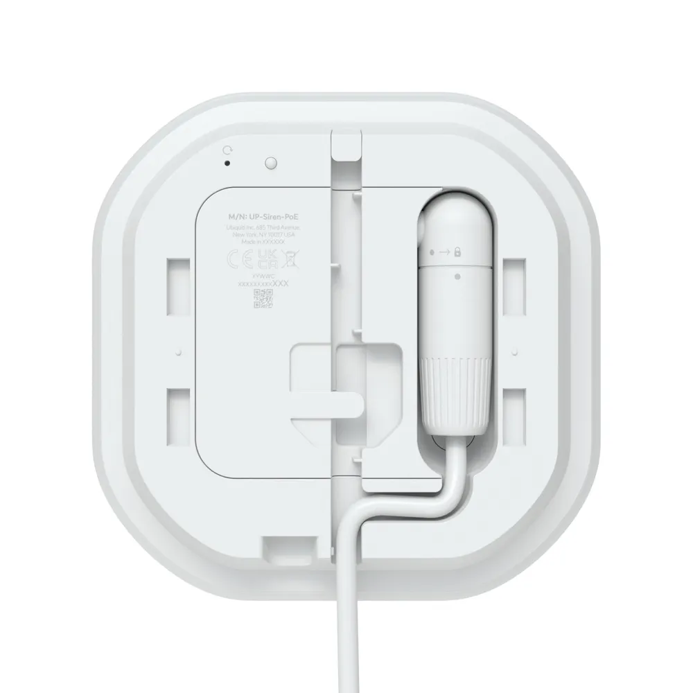 Ubiquiti UP Siren PoE została zaprojektowana tak, aby montaż był szybki i maksymalnie prosty. Elementy konstrukcyjne pasują do siebie intuicyjnie, dzięki czemu syrenę można zamocować bez specjalistycznych narzędzi. Przejrzysty układ mocowań sprawia, że cała instalacja przebiega sprawnie nawet u początkujących, co idealnie podkreśla przedstawiona grafika.